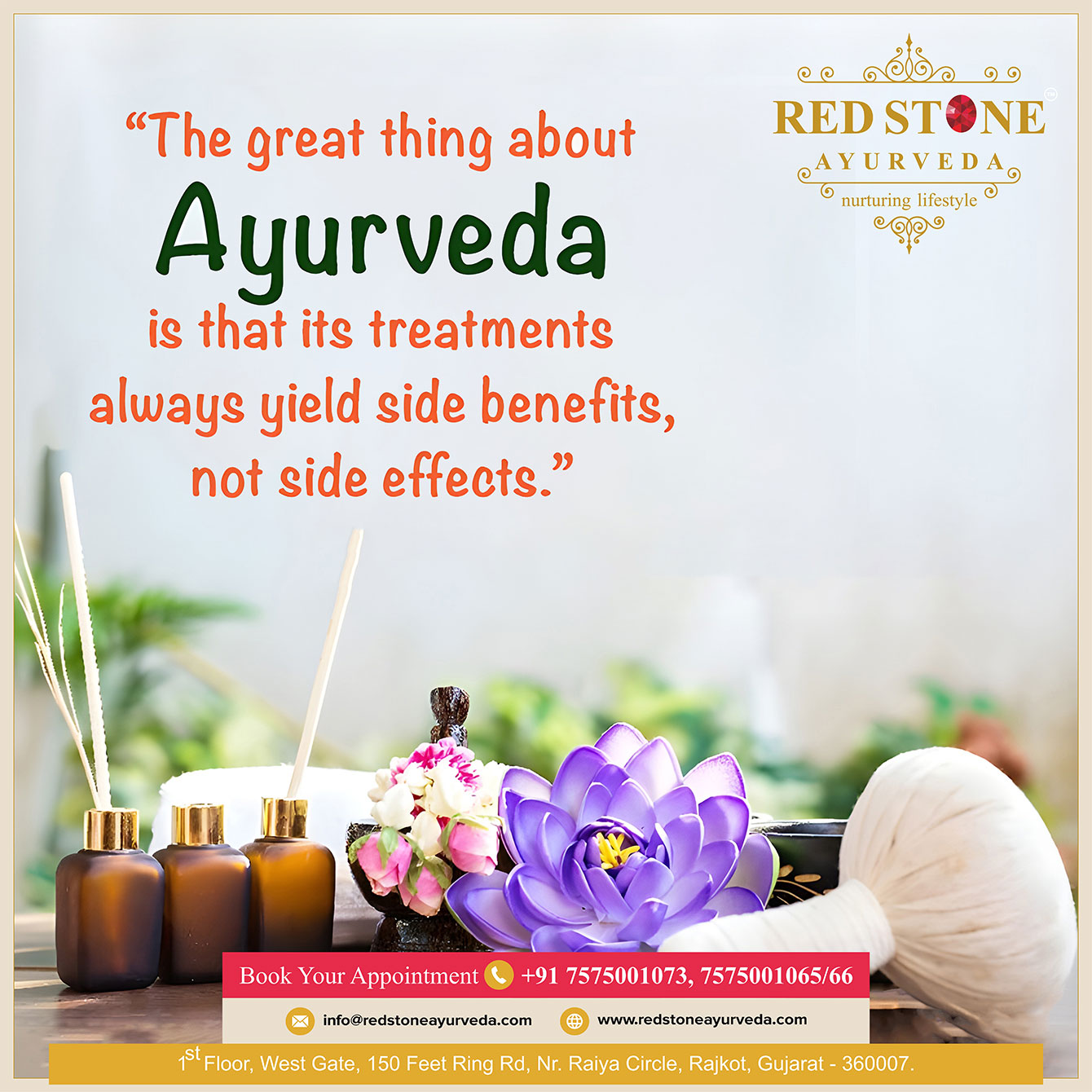 The great things about Ayurveda is that its treatment always yield side benefits, not side effects.